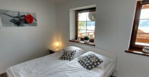 Domek położony jest przy promenadzie głównej w Mikołajkach kilka metrów od jeziora. Na posesji miejsce na samochód oraz grill, przy pomoście miejsce na łódź. Dom murowany o powierzchni ok 60m2,w którym na piętrze znajdują się dwie 2-osobowe sypialnie z widokiem na jezioro. Na parterze pokój gościnny z w pełni wyposażonym aneksem kuchennym, telewizją, rozkładaną 2-osobowa sofą, duże przeszklone drzwi na taras, łazienka. Parter budynku oraz łazienka przyjazne niepełnosprawnym.
